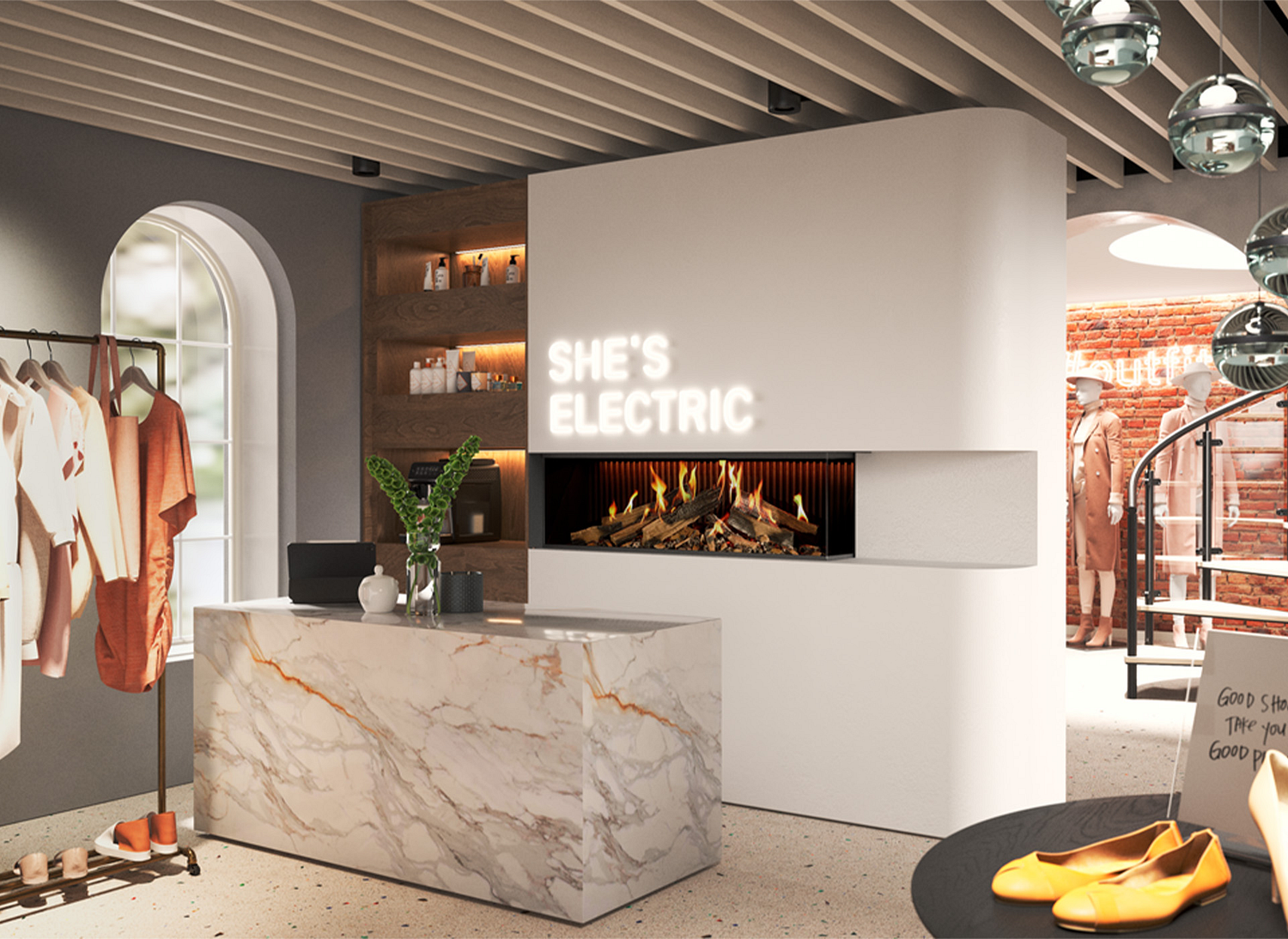 Tweezijdige elektrische haard voor open hoekopstellingen
