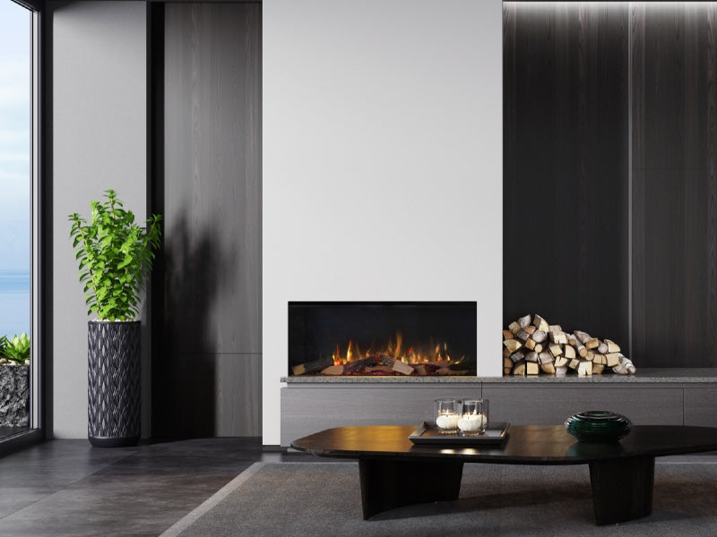 De Trimline Solus 100 cm is een brede elektrische inbouwhaard uit de premium Solus-serie van Trimline Fires. Met een glasbreedte van 100 cm biedt deze haard een royaal zicht op het vlambeeld, dat dankzij de geavanceerde LED-techniek zeer realistisch oogt.